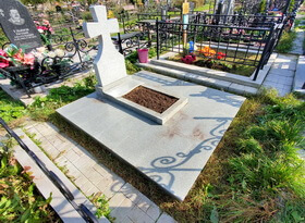 Очередная уборка на могиле из светлого гранита